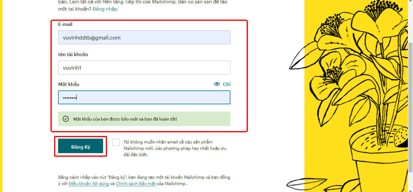 - Điền đầy đủ thông tin để tạo tài khoản mới > bấm vào nút Đăng ký.