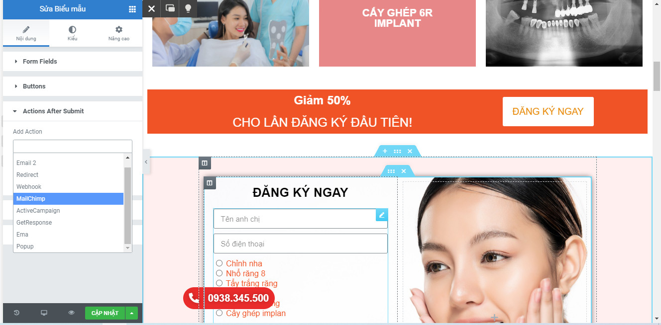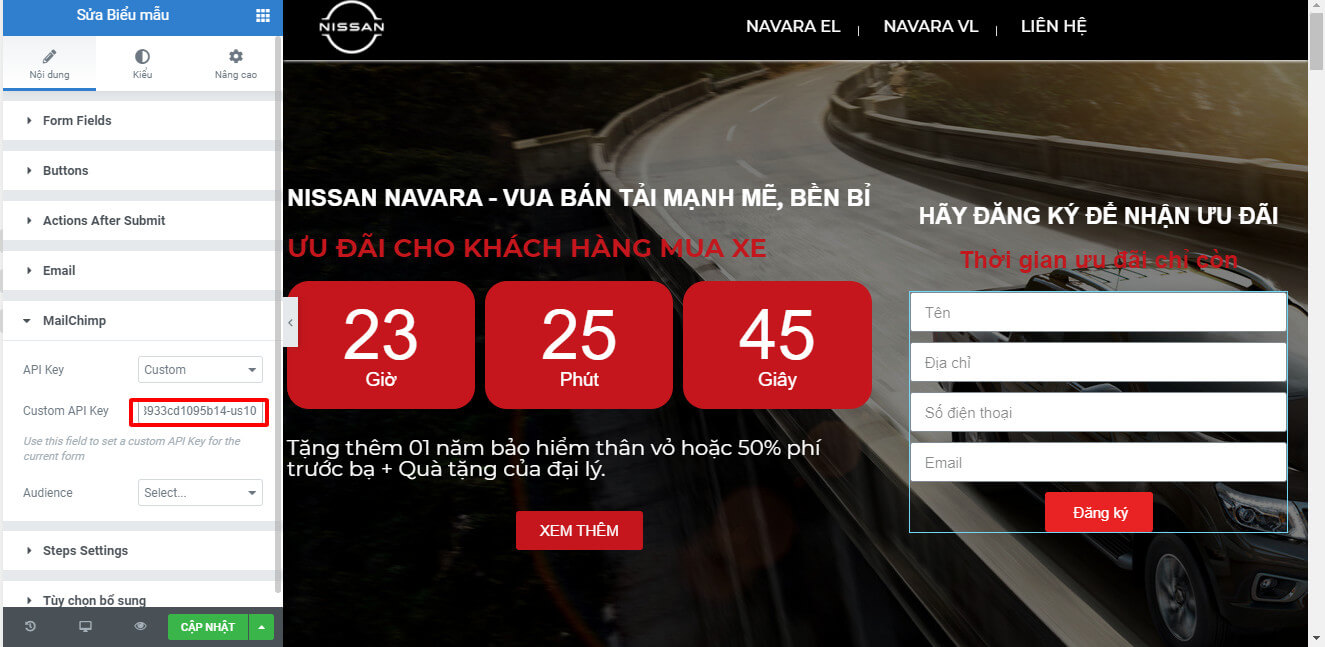 - Nhâp mã mailchimp vào ô sau > bấm vòa nút CẬP NHẬT.