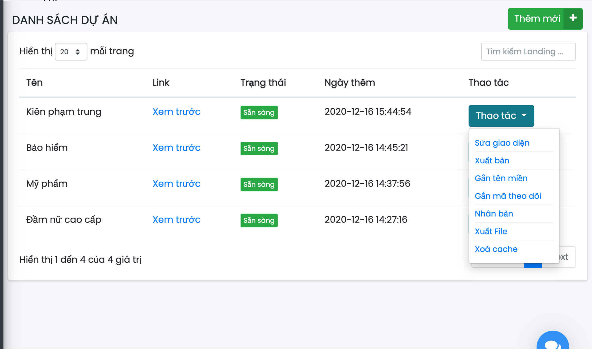 - Đăng nhập hệ thống chọn Danh sách landing.