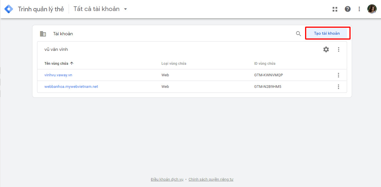 - Truy cập link https://tagmanager.google.com/