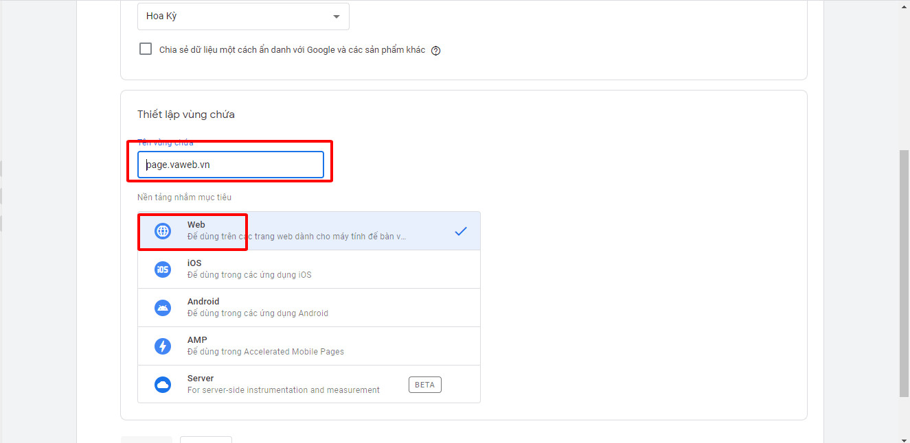 - Điền đầy đủ thông tin > chọn 1 module theo danh sách có sẵn > chọn 1 loại Nền tảng nhắm mục tiêu.