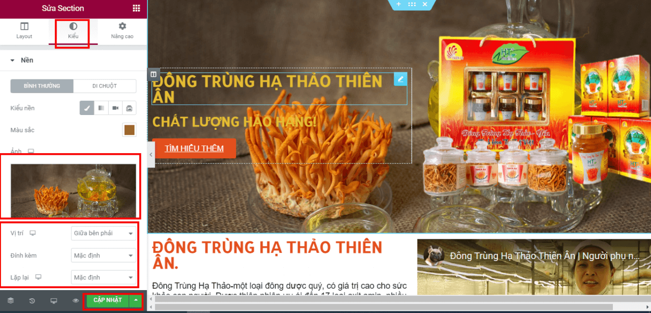 – Để thay được ảnh nền của section bạn làm các bước sau :