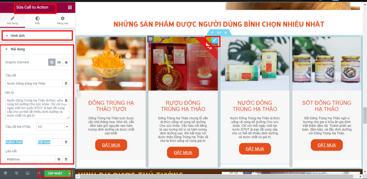 6. HƯỚNG ĐẪN SỬA HÌNH ẢNH, NỘI DUNG ĐẶT MUA ( Call to Action )