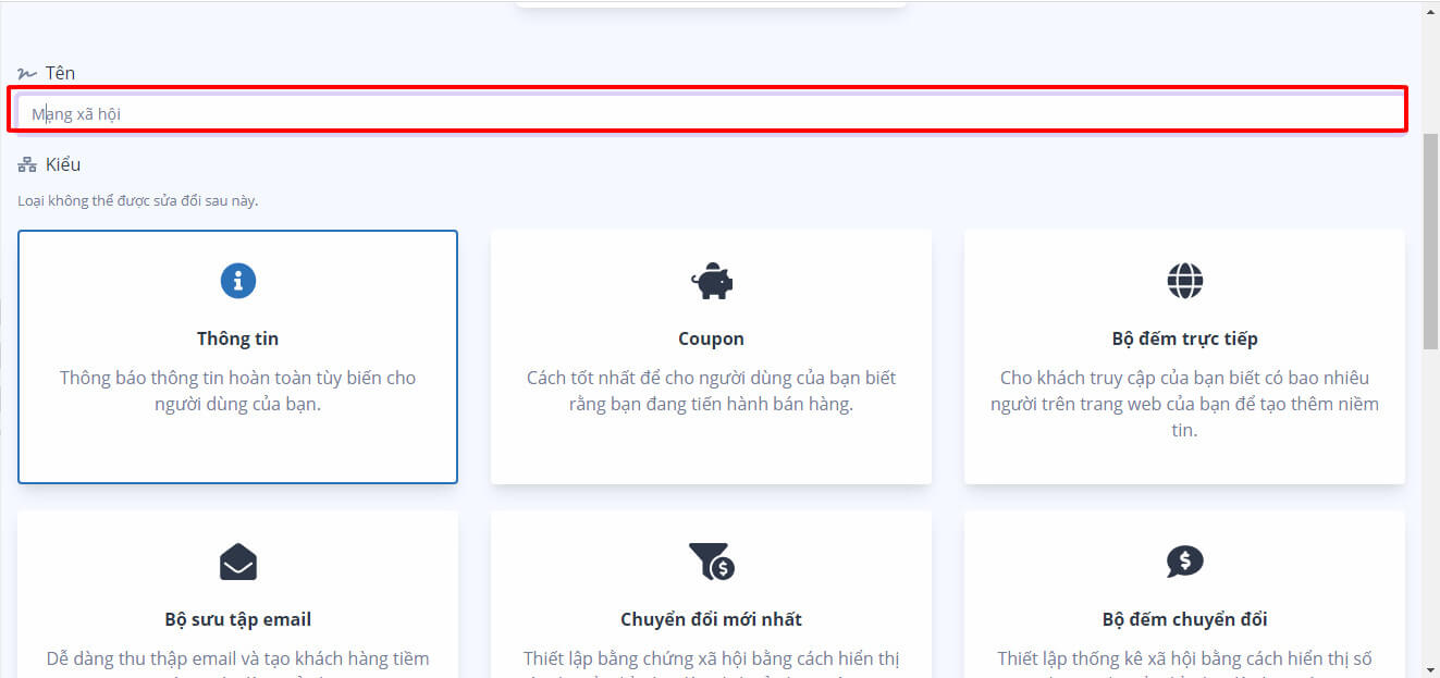 - Điền tên cho tiện ích chia sẻ mạng xã hội.