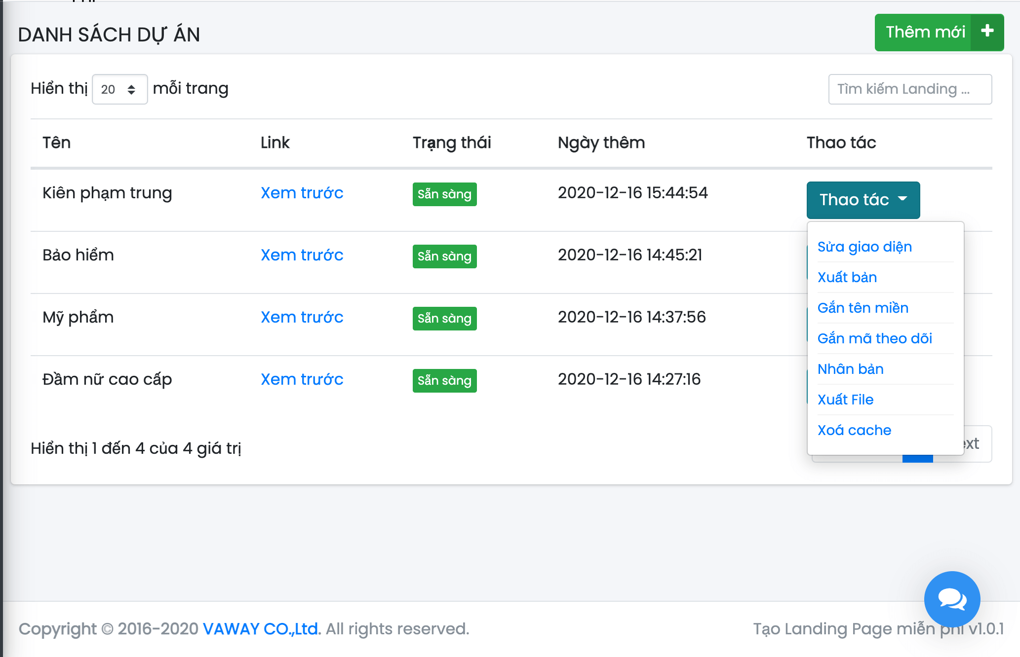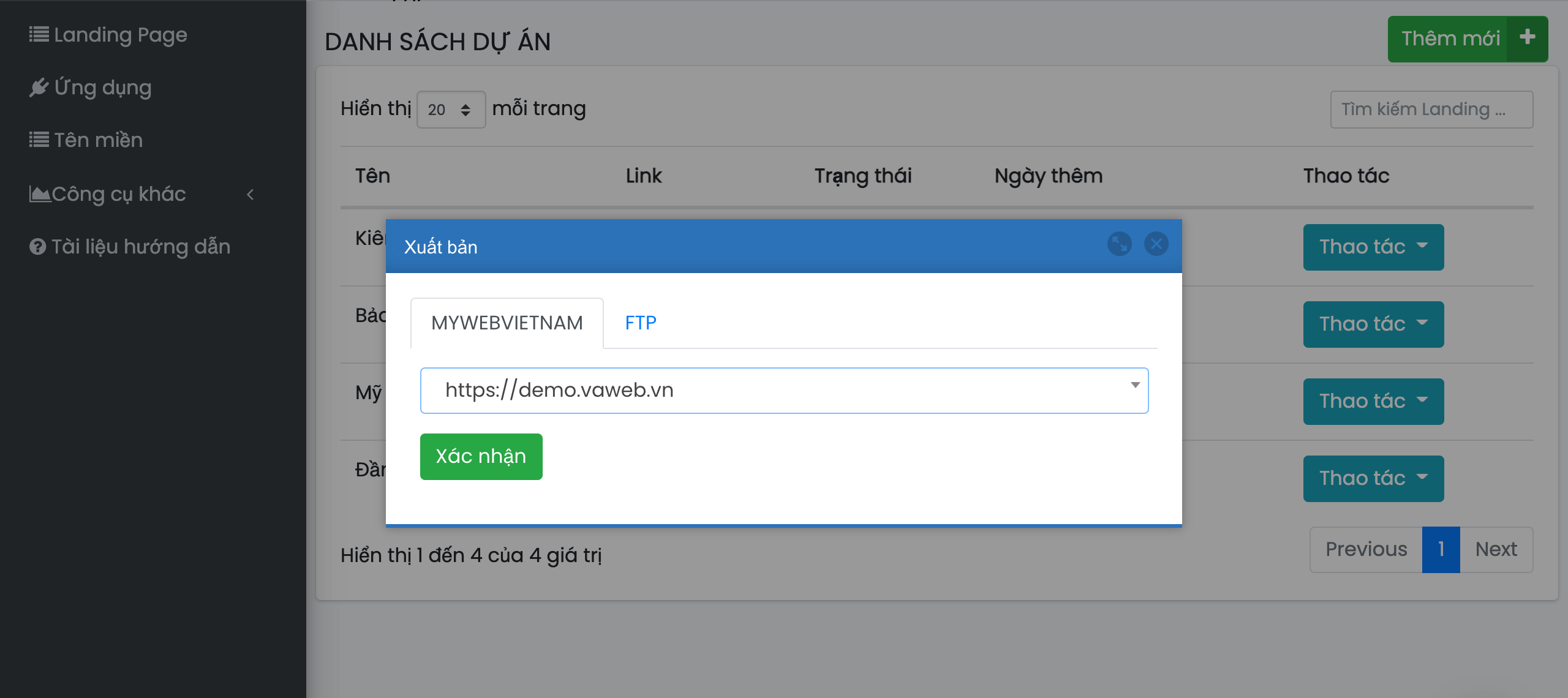 - Đăng nhập hệ thống quản trị chọn Landing Page