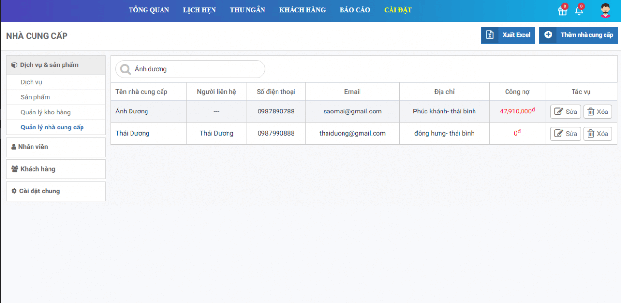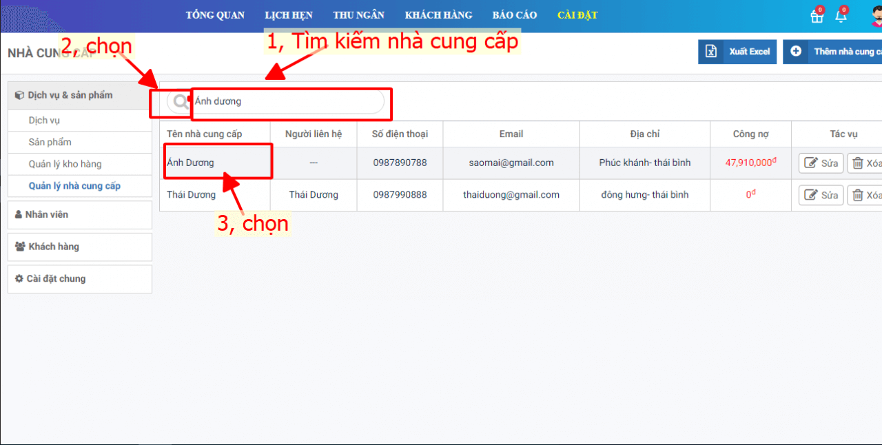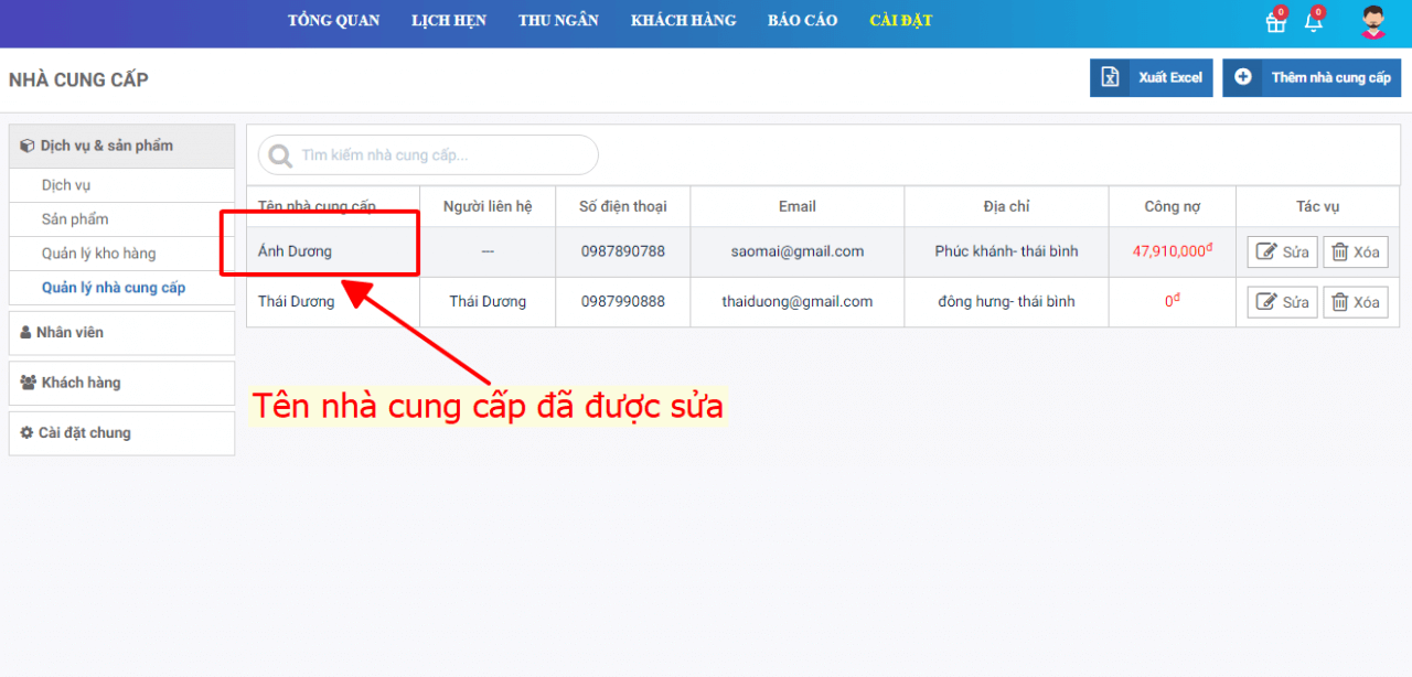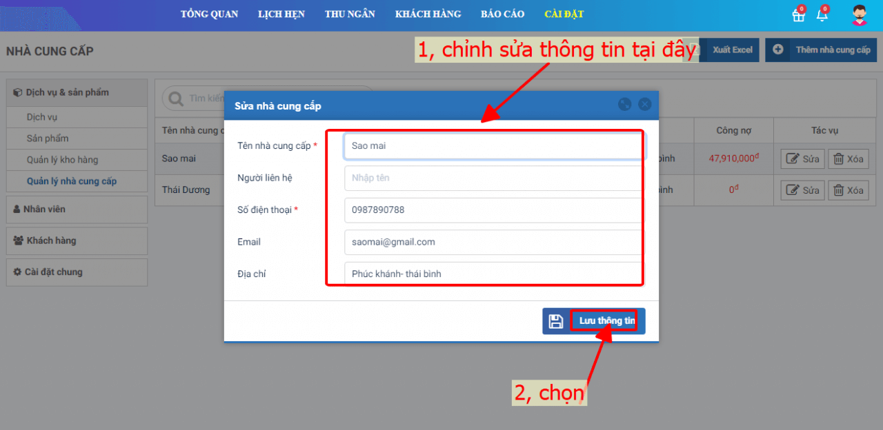 2. Chỉnh sửa nhà cung cấp