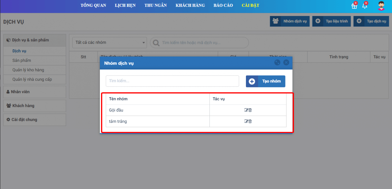Ghi chú: Nhóm Liệu trình spa đã bị xóa