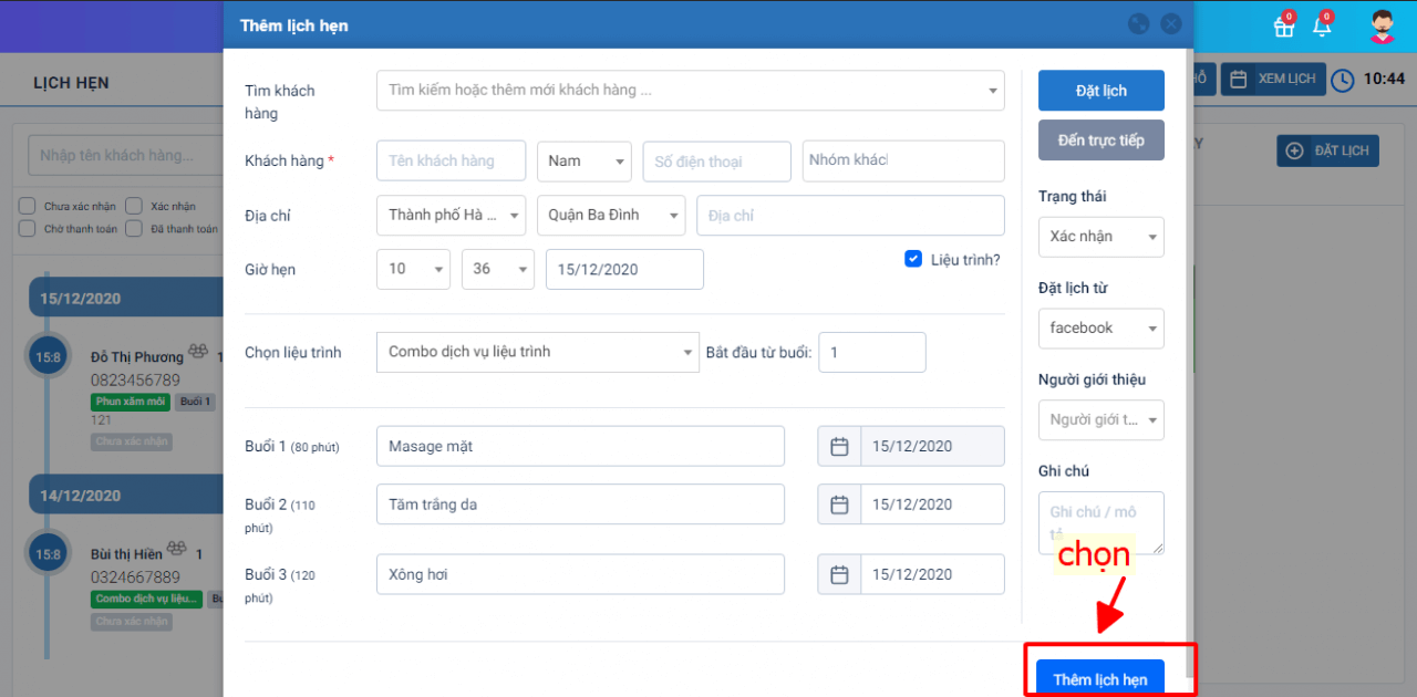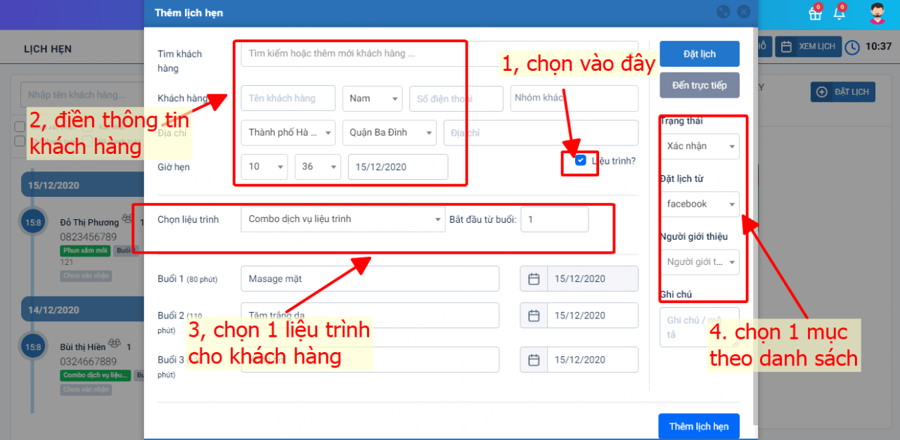 1.Thêm lịch hẹn dịch vụ liệu trình