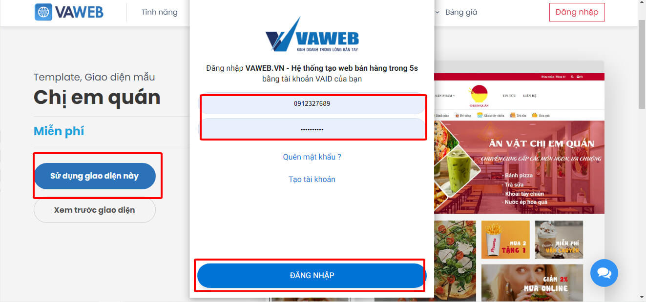 - Bấm chọn Sử dụng giao diện này > nhập thông tin tài khoản > Đăng nhập.