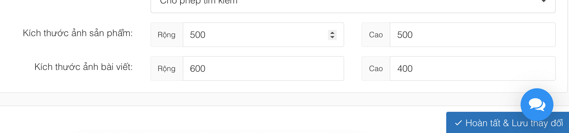 Điền các thông số và bấm Hoàn tất & lưu thay đổi.