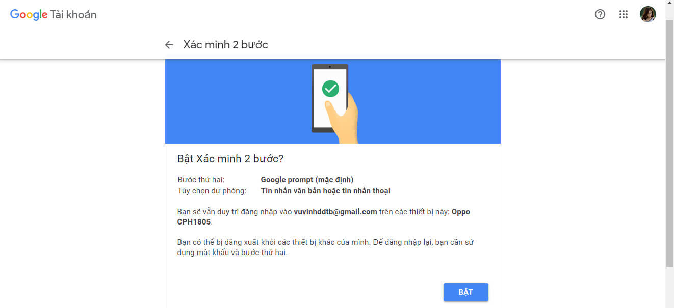 3. Hướng dẫn bật tính năng xác minh 2 bước.