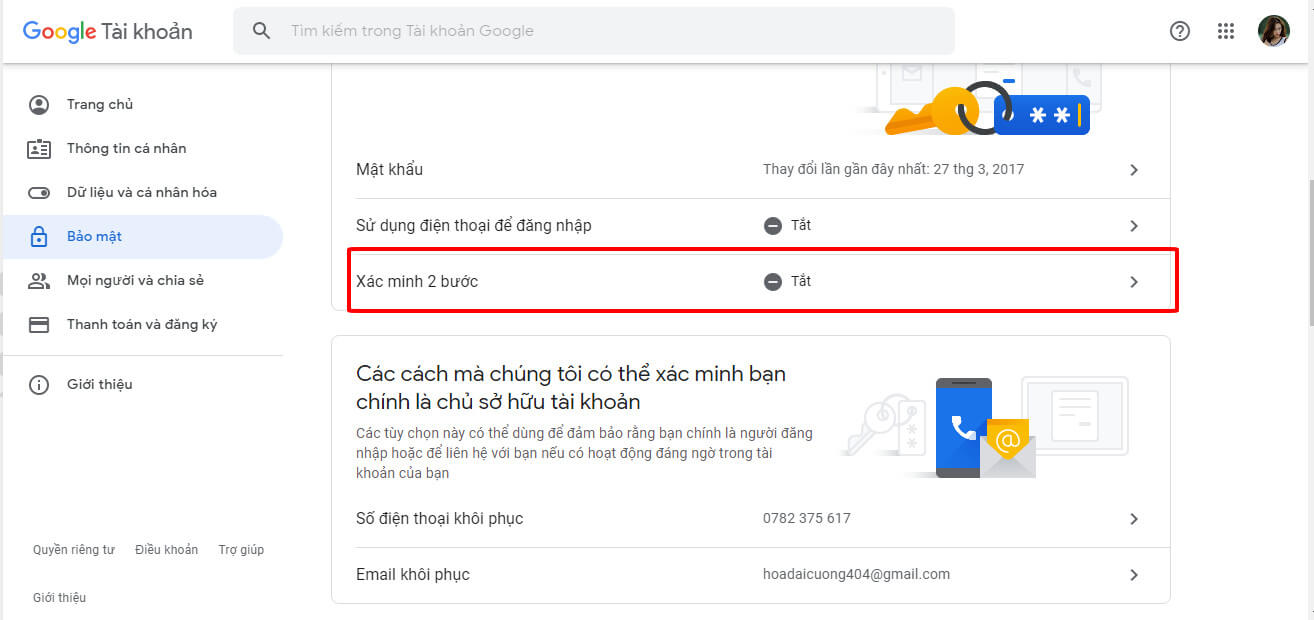 Lưu ý: Phần bật tính năng xác minh 2 bước, chúng tôi sẽ hướng dẫn ở phần 3. Hướng dẫn bật xác minh 2 bước.