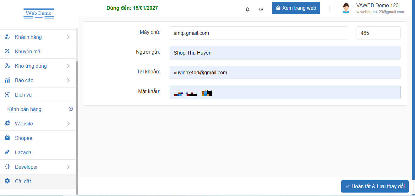 2. Hướng dẫn cài đặt lấy mã SMTP.
