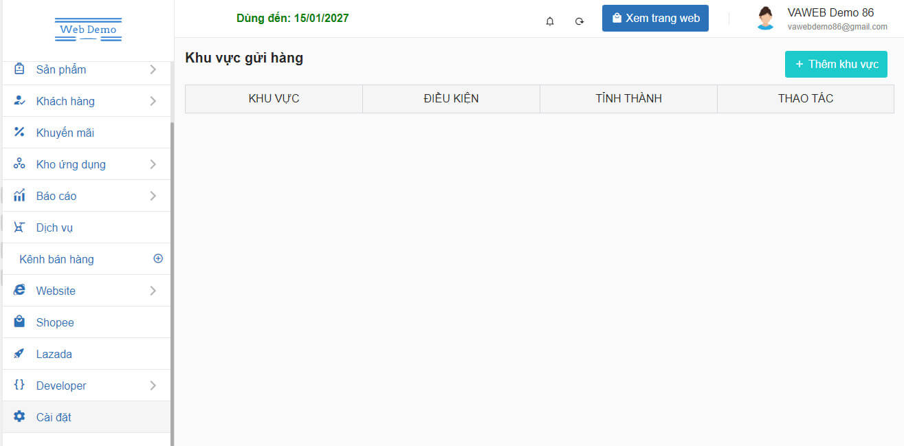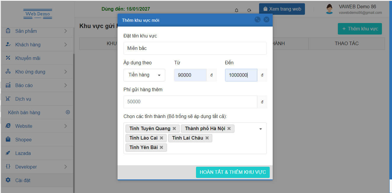 - Điền thông tin khu vực > bấm nút HOÀN TẤT & THÊM KHU VỰC.