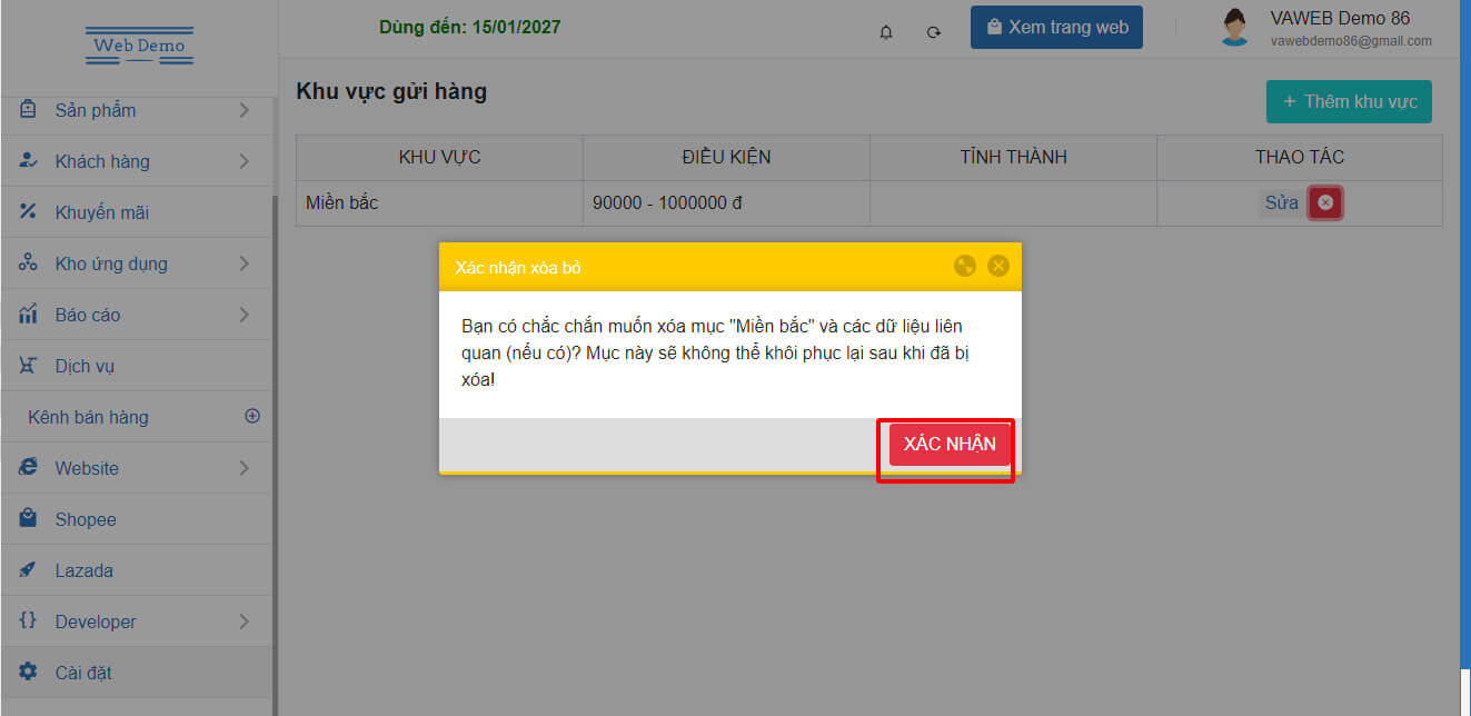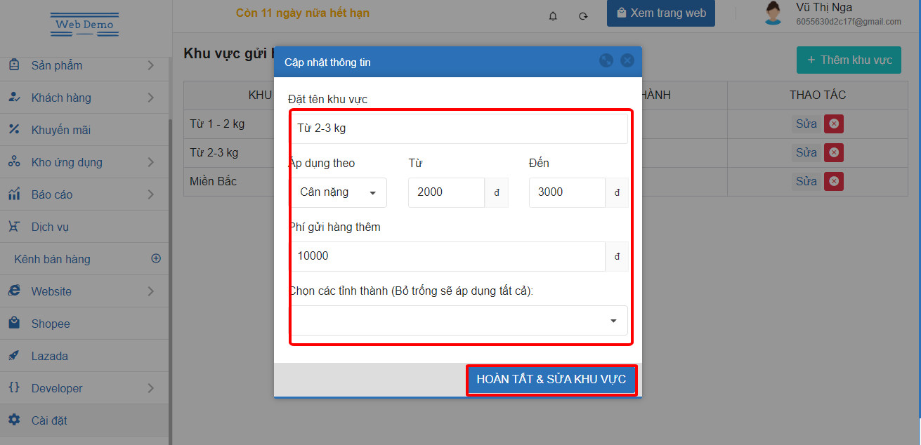 - Chỉnh sửa lại thông tin > bấm nút HOÀN TẤT & THÊM KHU VỰC.