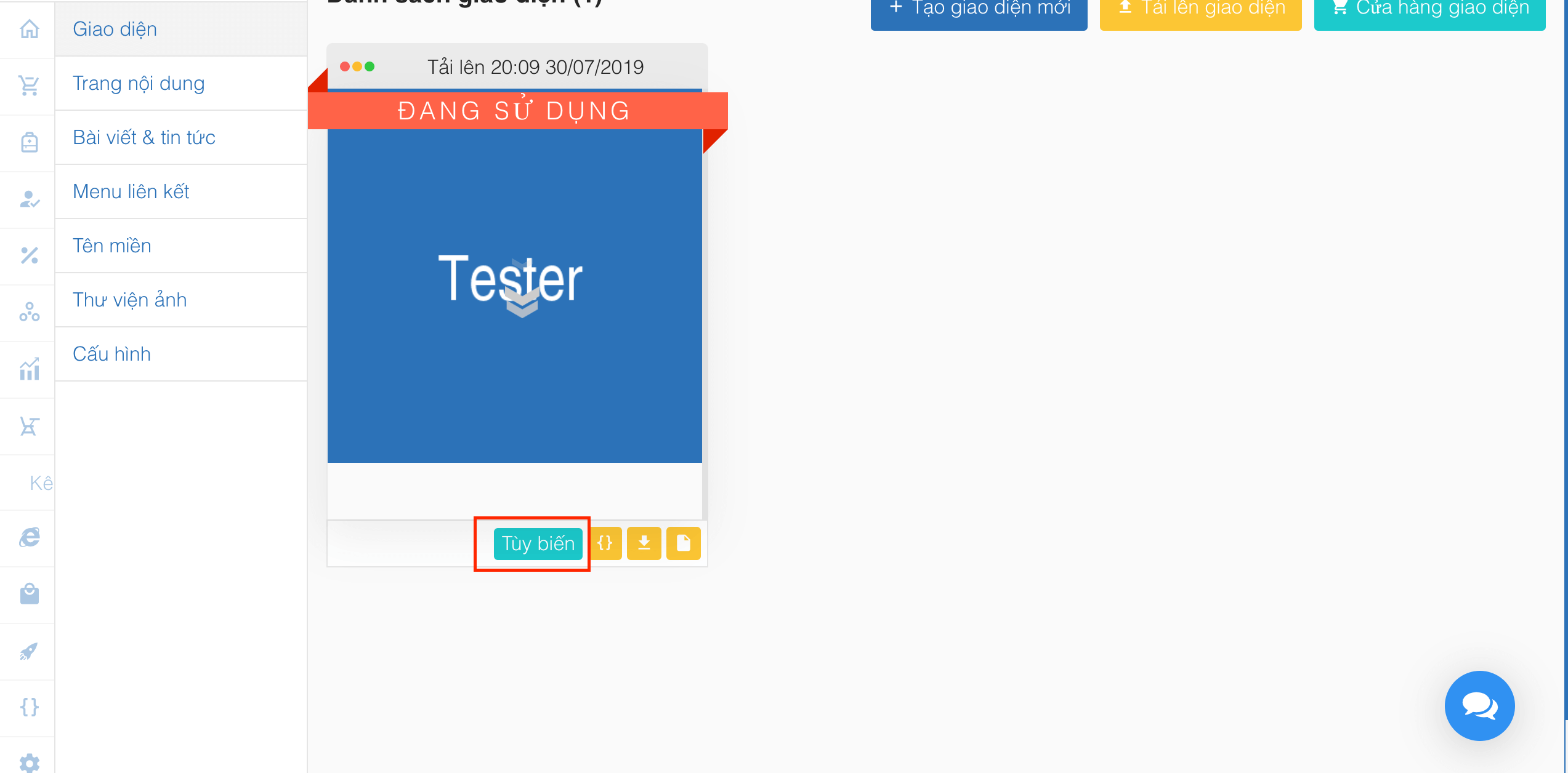 - Đăng nhập hệ thống chọn Website > Giao diện.