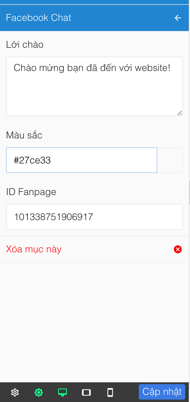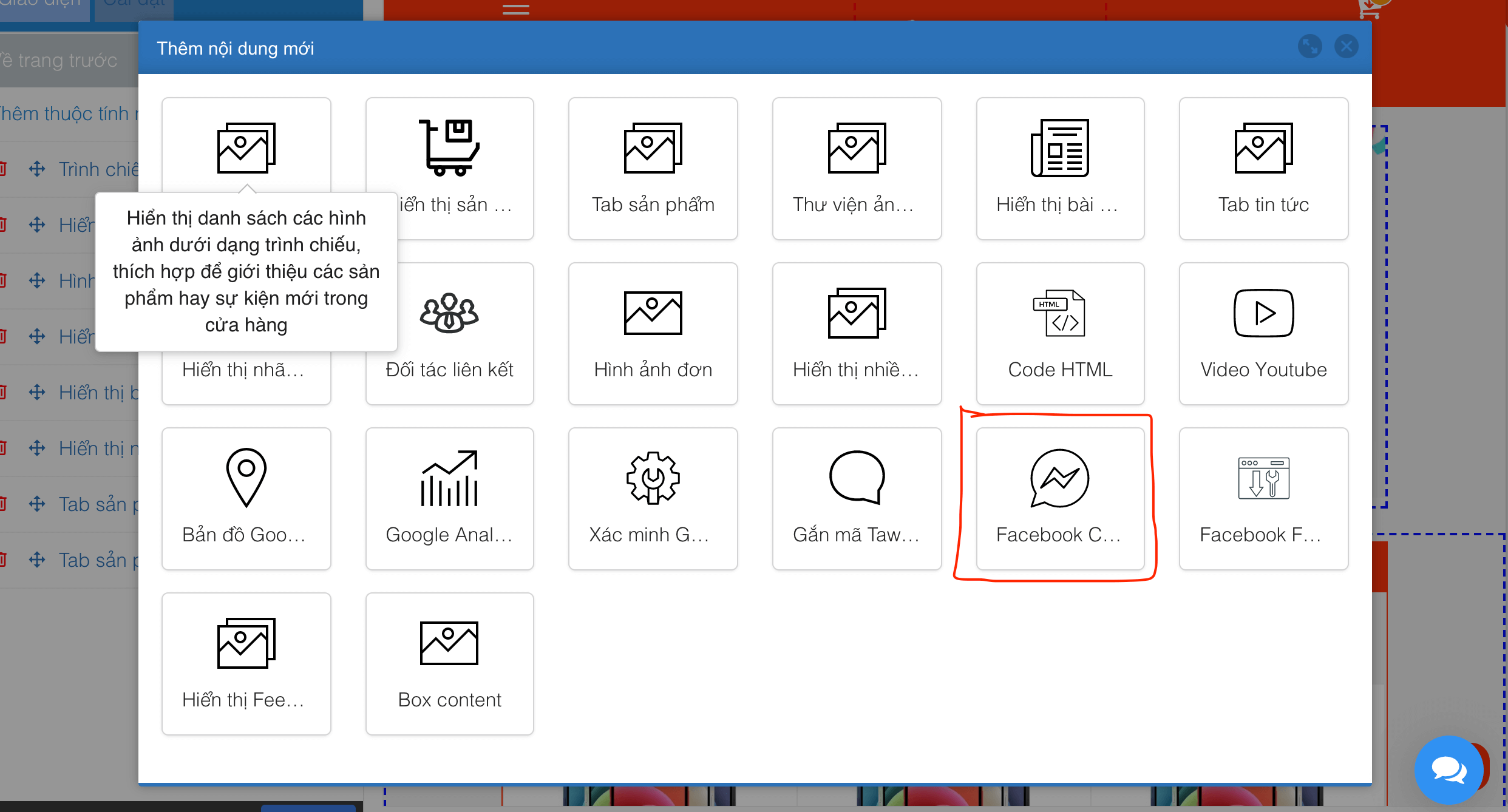 - Chọn Thêm thuộc tính mới bấm Facebook Chat.