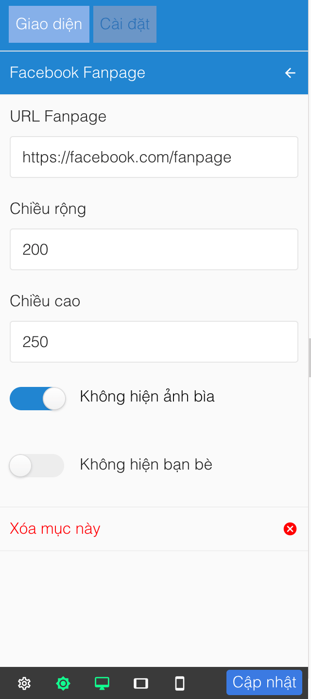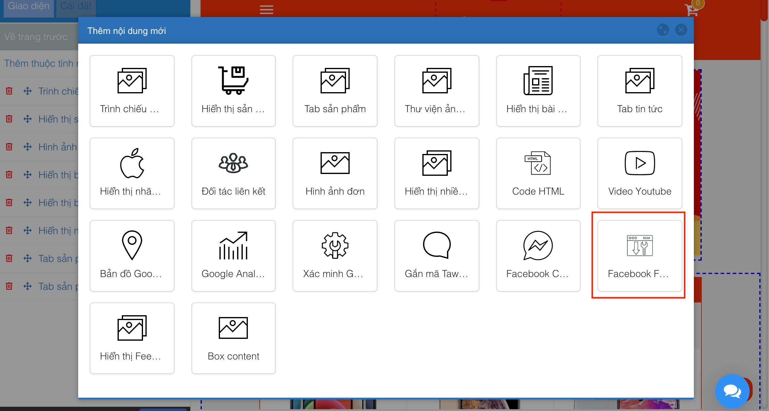 1. Thêm hiển thị Fanpage Facebook