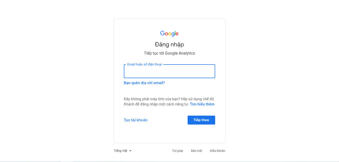 - Sau khi đăng nhập thành công, Truy cập vào website https://analytics.google.com/analytics/.