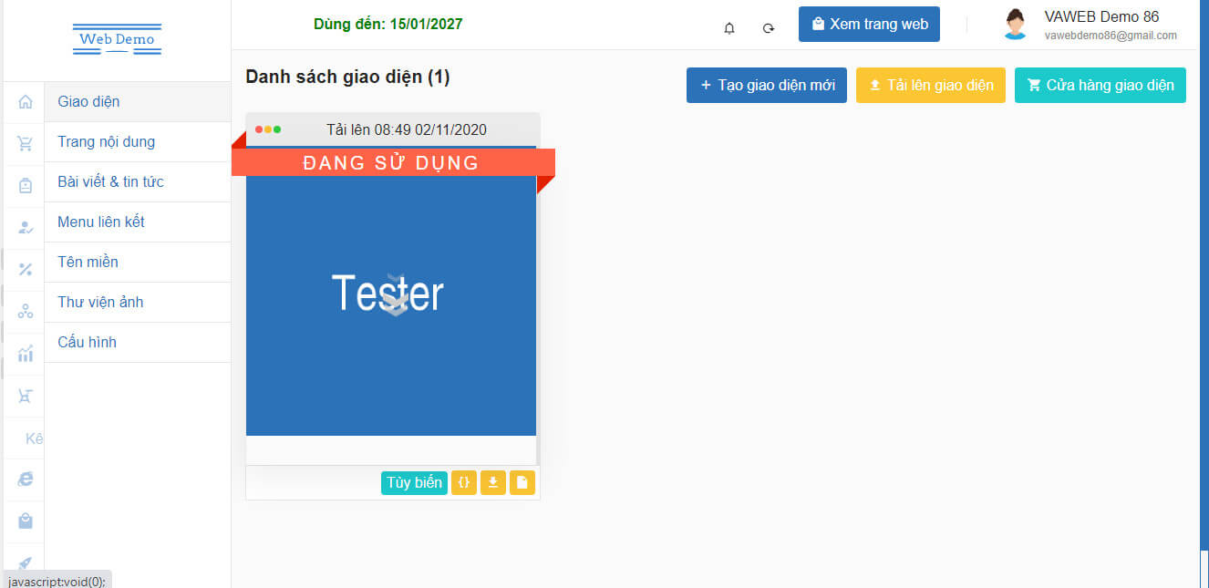 - Đăng nhập quản trị, chọn: Website > Giao diện.