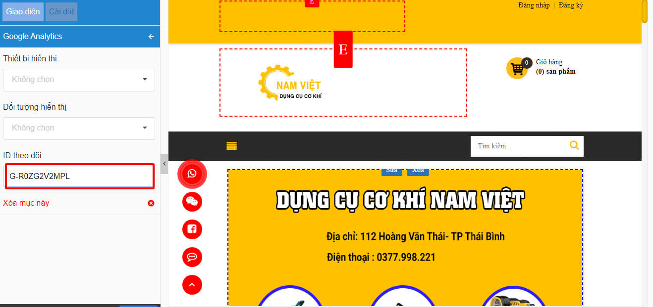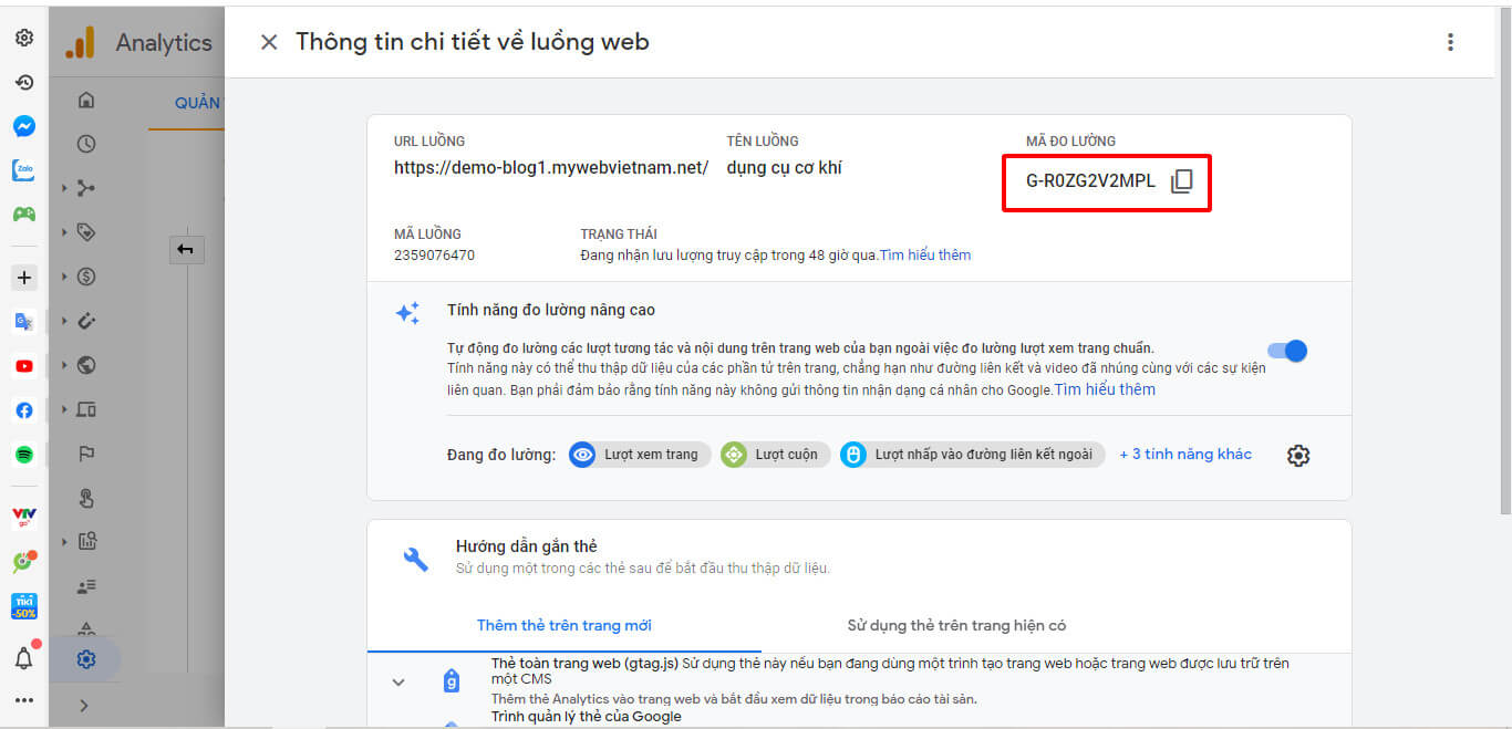 - Copy mã đo lường quay lại website muốn gắn mã.