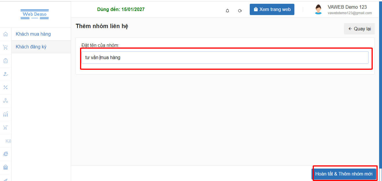 1. Hướng dẫn thêm nhóm khách đăng ký.