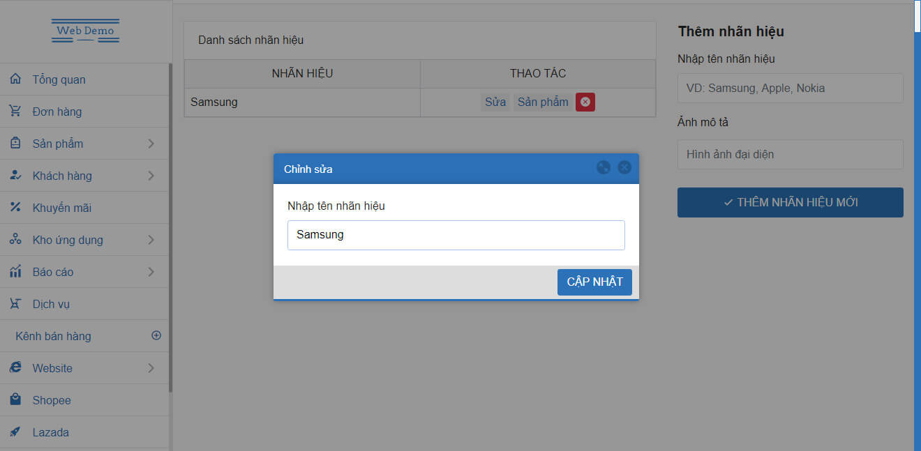 - Đăng nhập vào quản trị chọn Sản phẩm > Nhãn hiệu.
