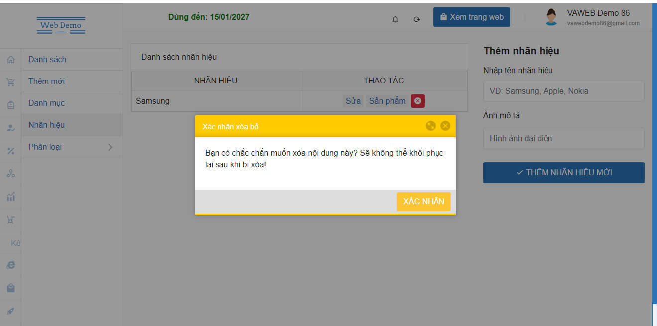 - Bấm vào biểu tượng xóa bên cạnh nhãn hiệu.