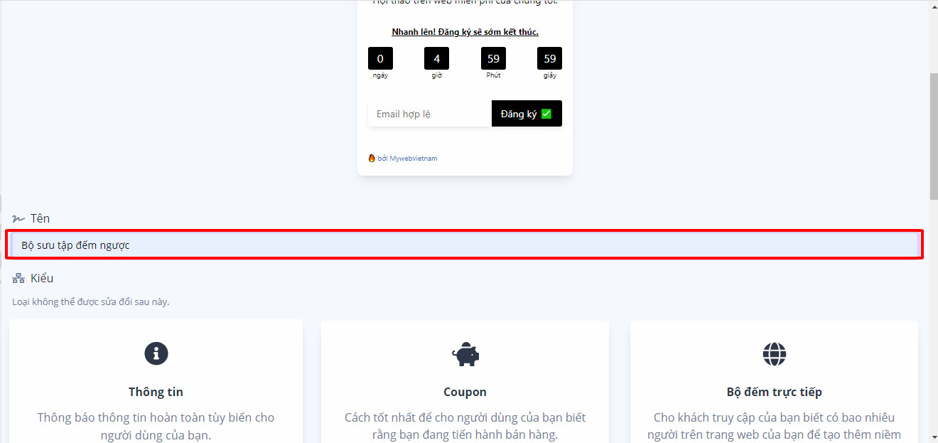 - Chọn kiểu tiện ích Bộ sưu tập đếm ngược.
