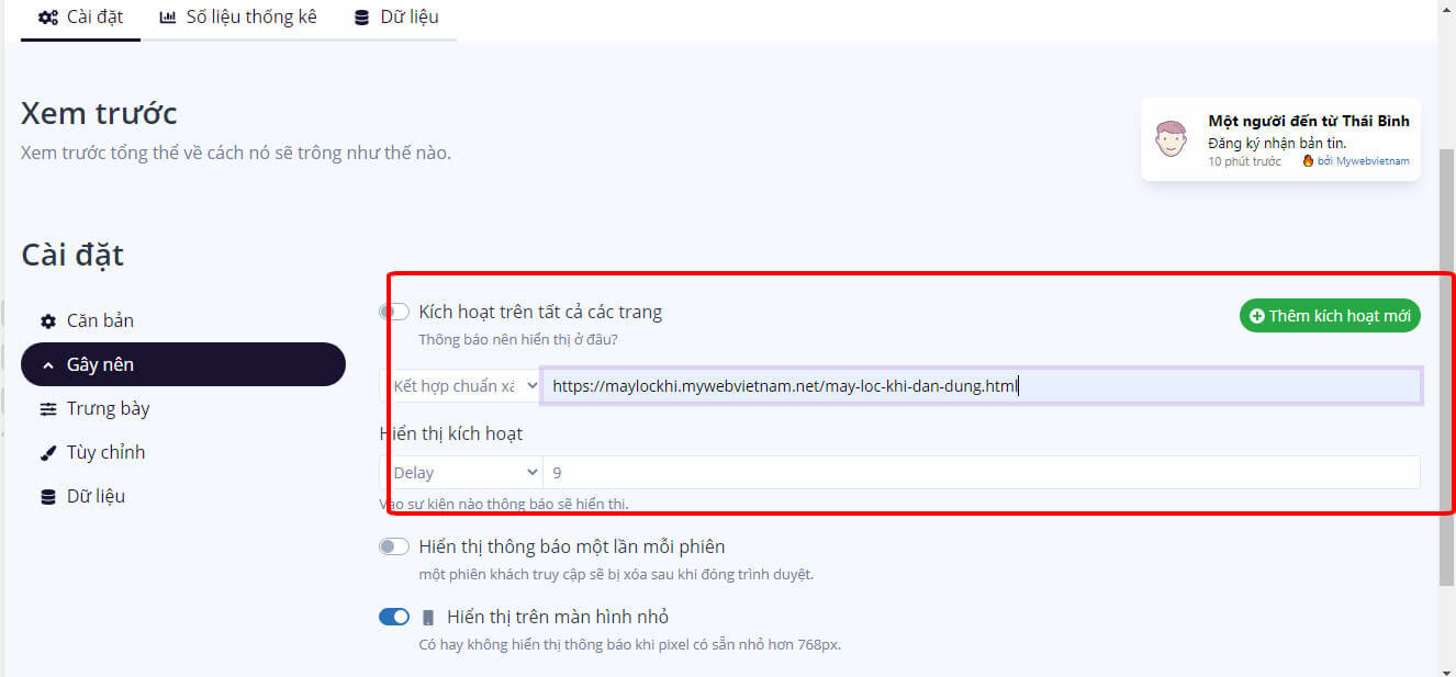 Khi đó, tiện ích chỉ hiển thị trên các trang có chứa URL mà quý khách đã thêm.