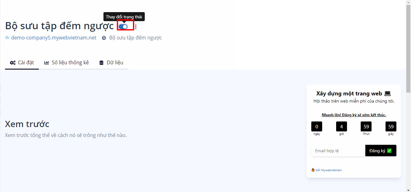 Công dụng: Thông báo tới khách hàng biết được thời gian còn lại của chương trình khuyến mại của 1 sản phẩm, dịch vụ nào đó mà quý khách đang bán hoặc đang cung cấp. Từ đó, tăng khả năng mua sản phẩm (sử dụng dịch vụ) của khách hàng, giúp gia tăng doanh số đối với quý khách.