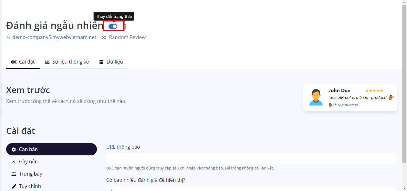 2. Hiển thị tiện ích đánh giá ngẫu nhiên (Random Review) ngoài trang chủ