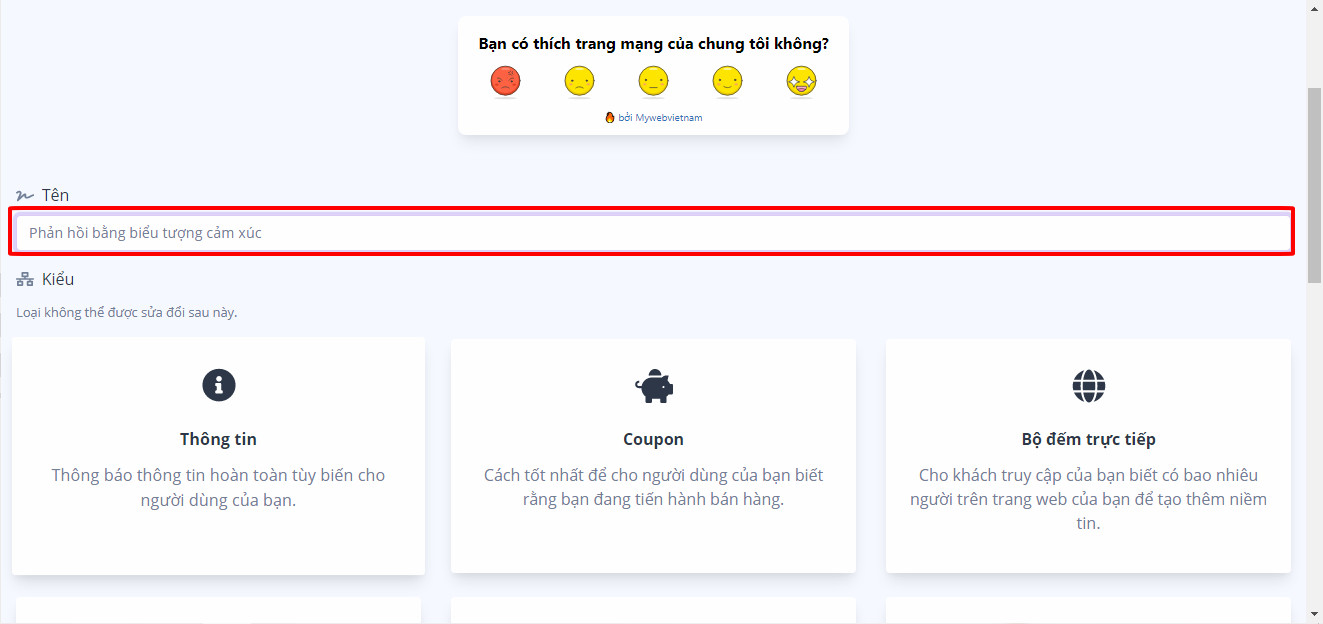 - Điền tên cho kiểu tiện ích Trong phản hồi emoji.