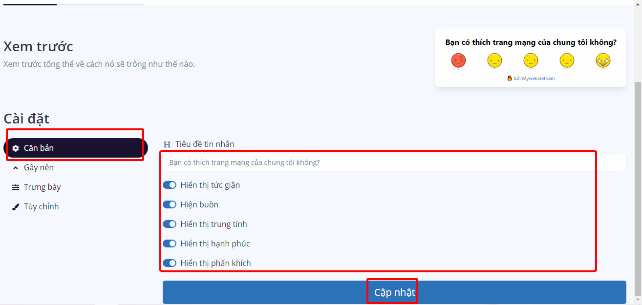 1. Hướng dẫn sử dụng tiện ích Phản hồi bằng biểu tượng cảm xúc (Trong phản hồi Emoij).