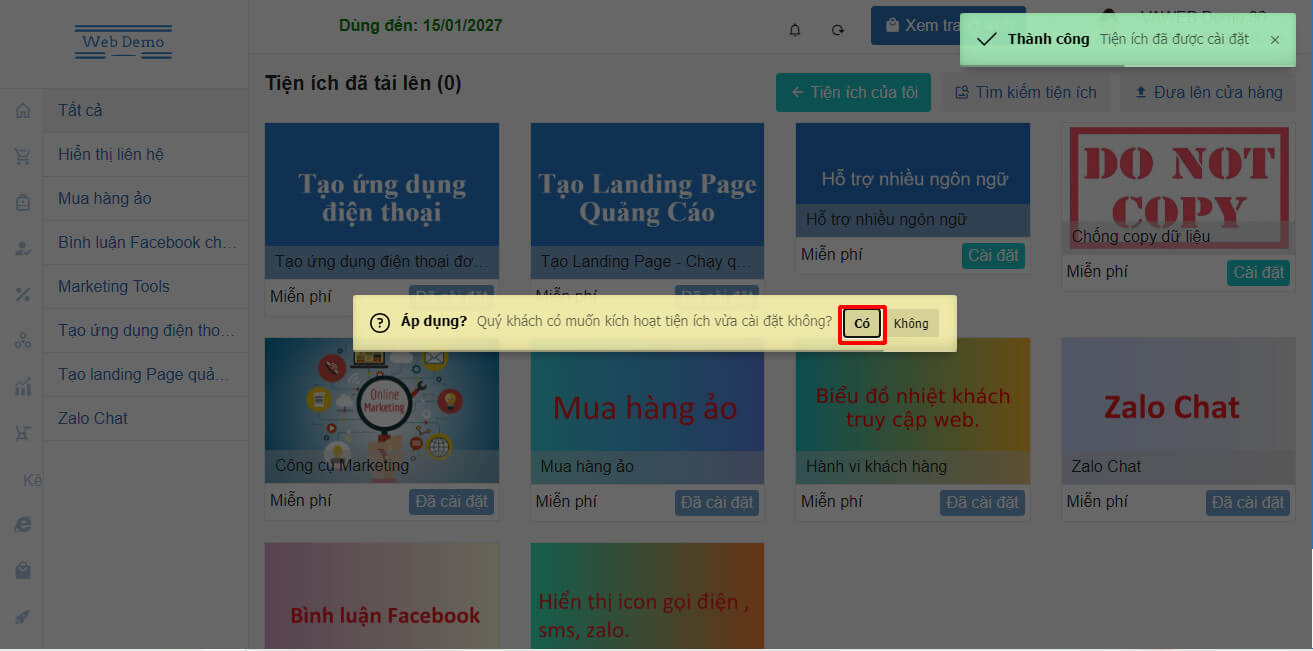 - Đăng nhập quản trị chọn Kho ứng dụng > Tất cả > Cửa hàng tiện ích.