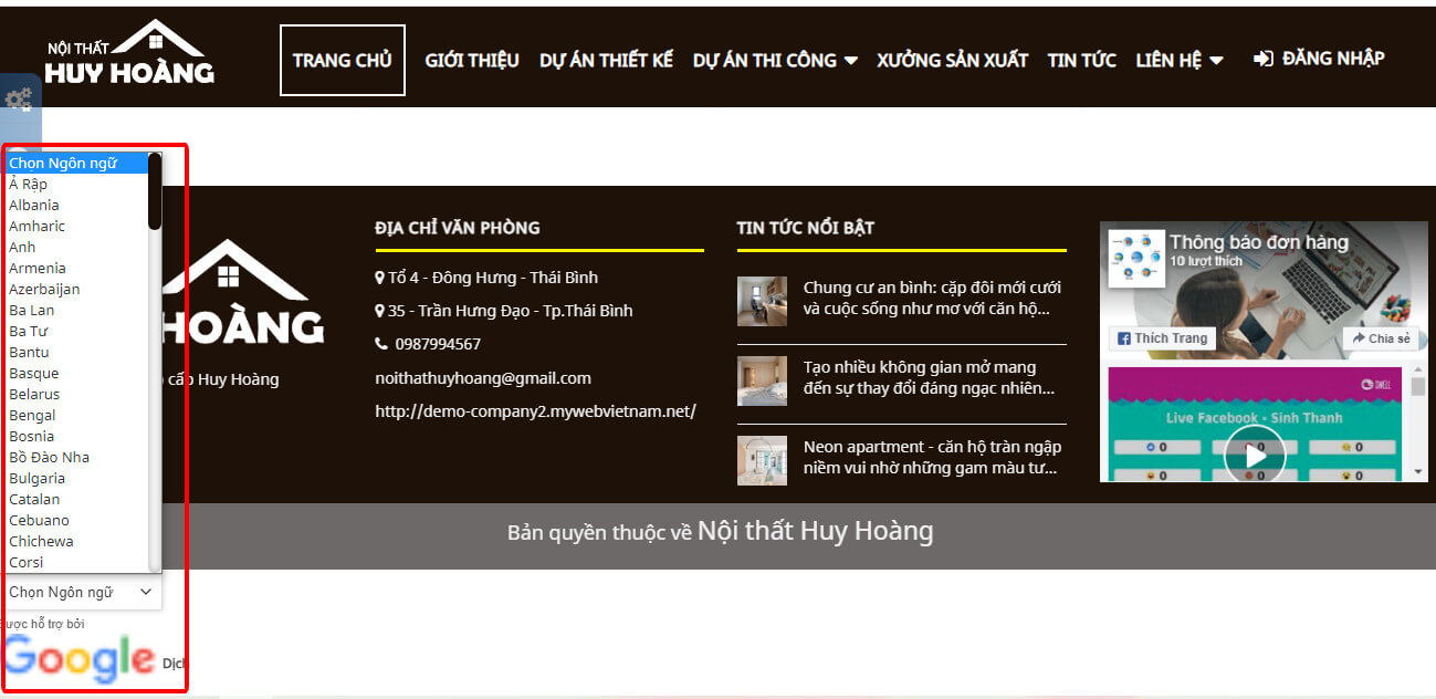 Công dụng: Giúp website của quý khách được dịch ra nhiều ngôn ngữ khác nhau: Anh, Pháp, Nga, Trung Quốc,…. Khi đó, website của bạn không chỉ phục vụ cho khách hàng là người Việt mà còn có thể phục vụ cho nhiều khách hàng ở các quốc gia khác nhau nữa.