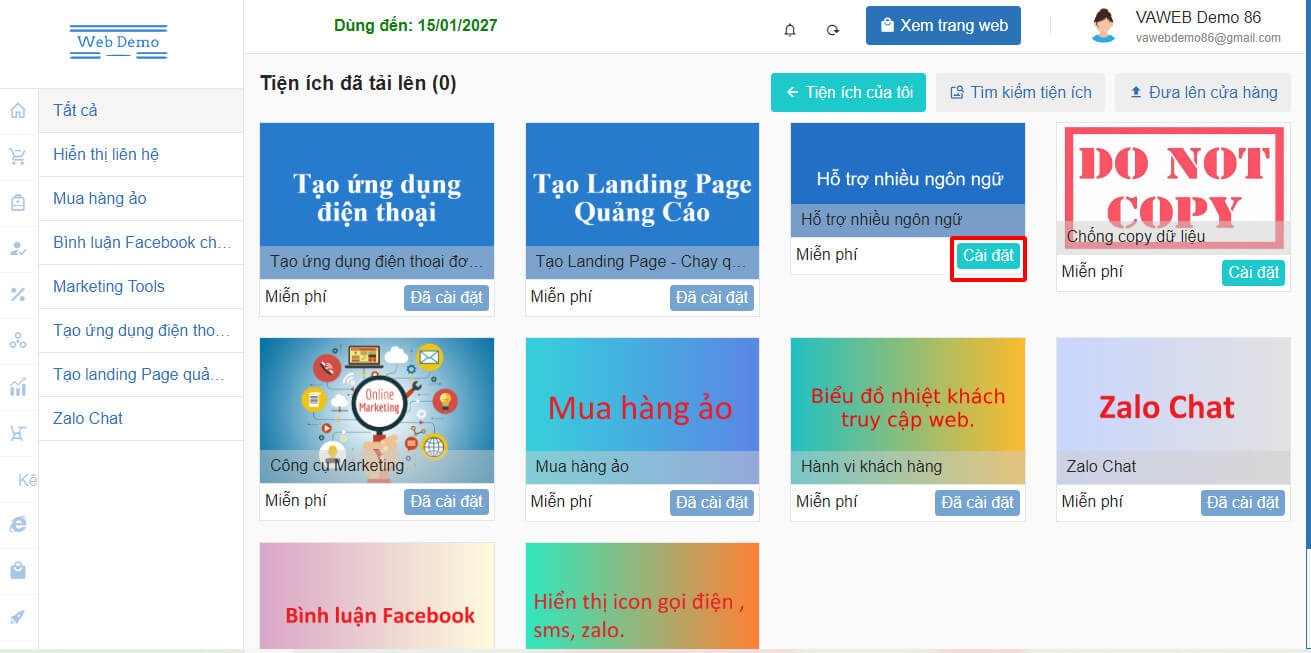 - Chọn tiện ích Hỗ trợ nhiều ngôn ngữ > Bấm vào Cài đặt.