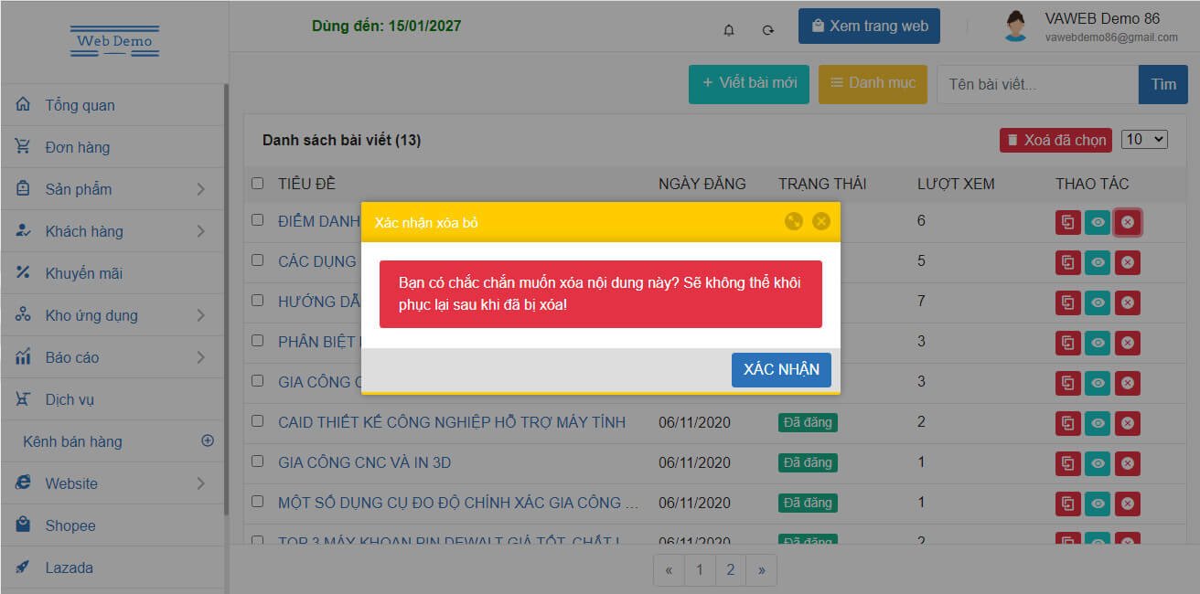 - Bấm vào biểu tượng xóa bên cạnh bài viết muốn xóa.