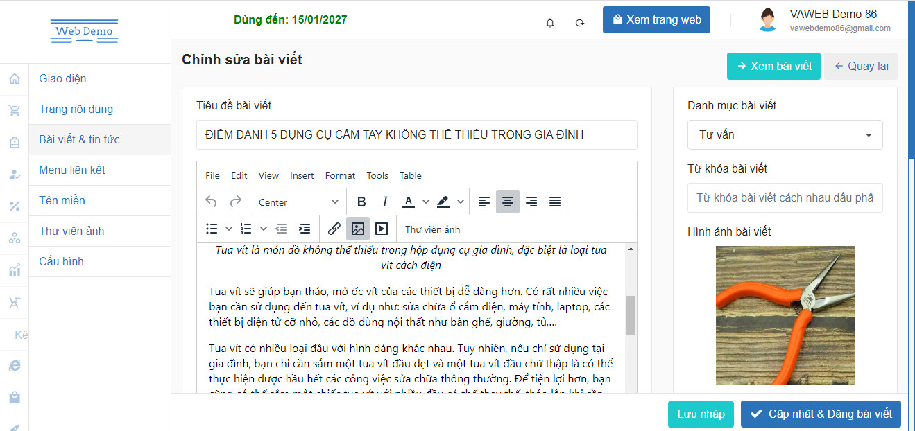 - Điền đầy đủ nội dung bài viết.