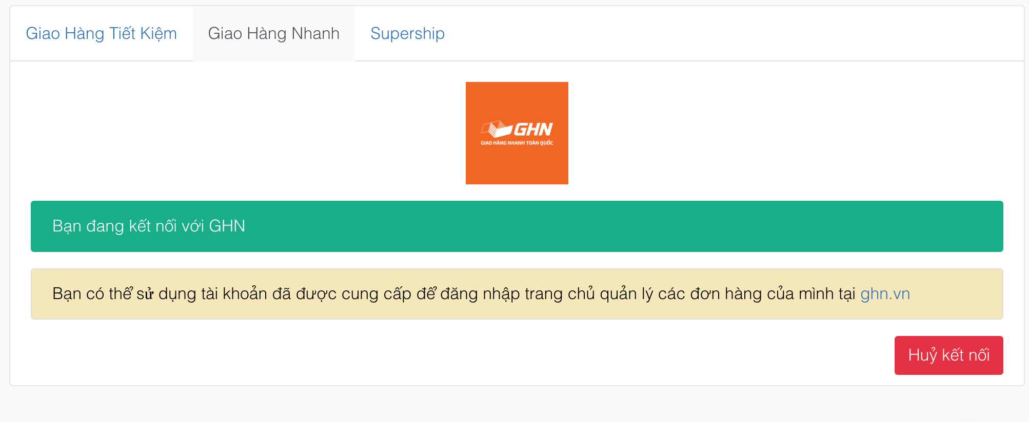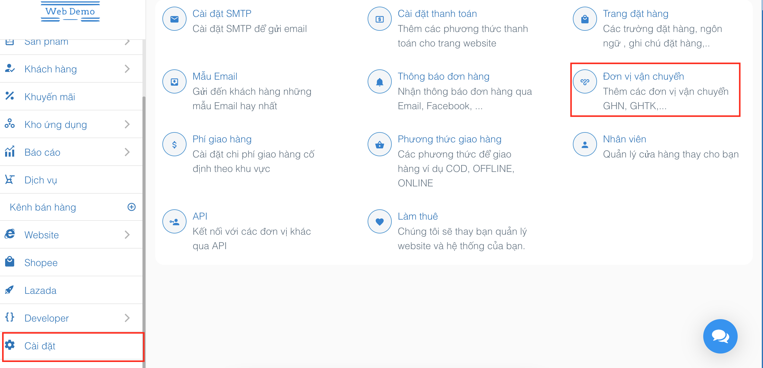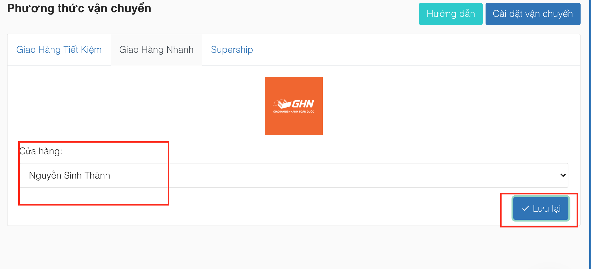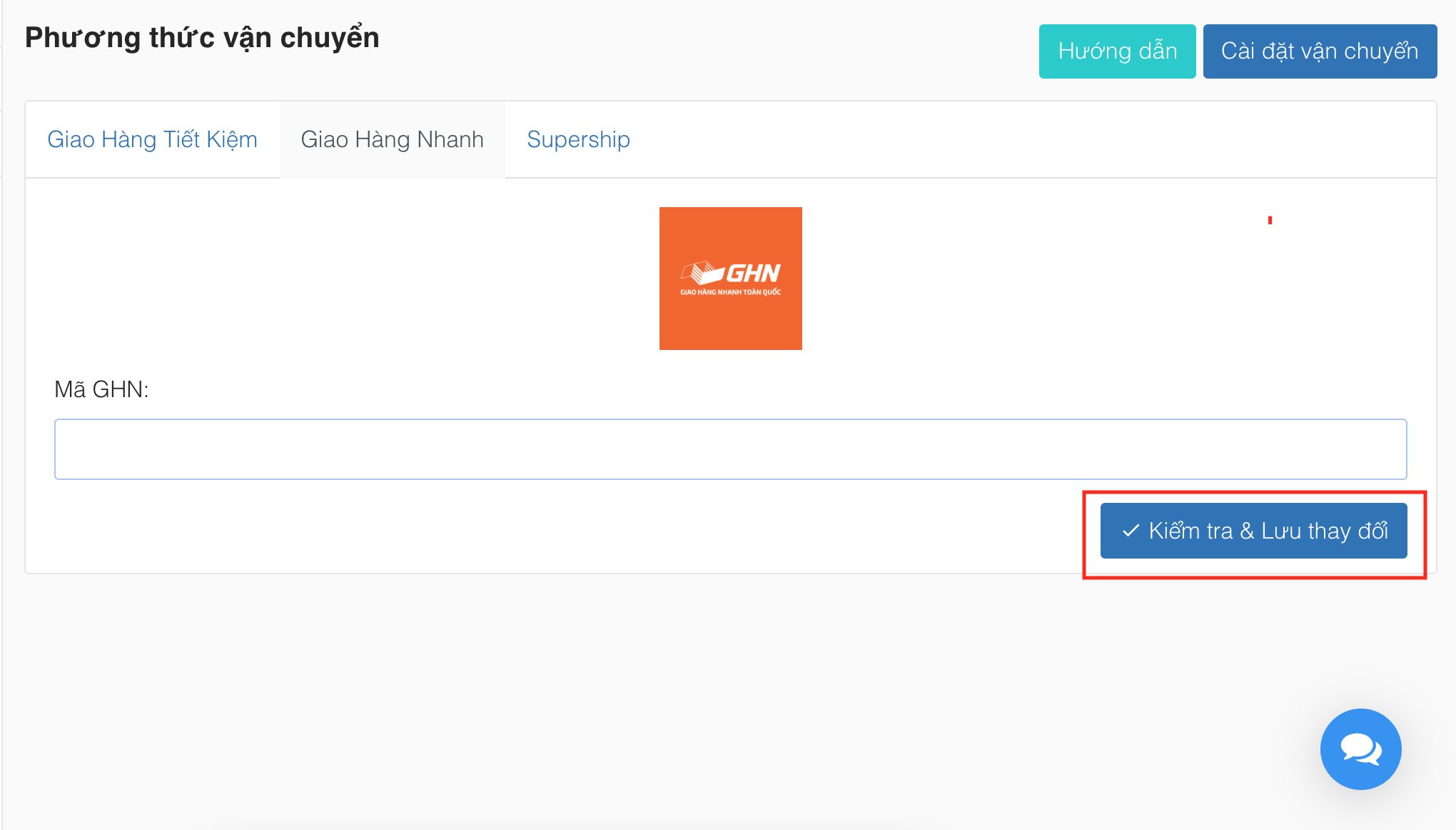 - Đăng nhập hệ thống quản lý Cài đặt > Đơn vị vận chuyển > Chọn Giao Hàng Nhanh.